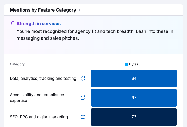 How AI platforms characterize your brand is shaped by far more than your own website. Reddit threads, forums, and social media posts all feed into the picture these systems build of who you are and whether you can be trusted. Our tools give us analysis and specific insight into how AI platforms are characterizing your brand, including the pros and cons they surface and sentiment, so we can take targeted action to influence how you’re portrayed.
